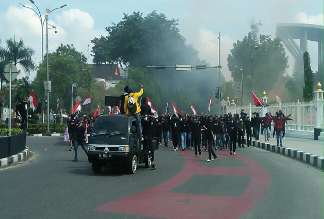 PEKANBARU. RIAUMADANI. COM - Akibat aksi unjuk rasa Aliansi Mahasiswa
