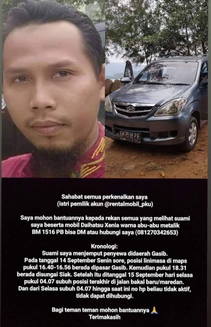 Jasad M Alhadar (29) Pemilik Rental Mobil Ditemukan di Daerah Tualang, Siak. Almarhum Diduga Dibegal