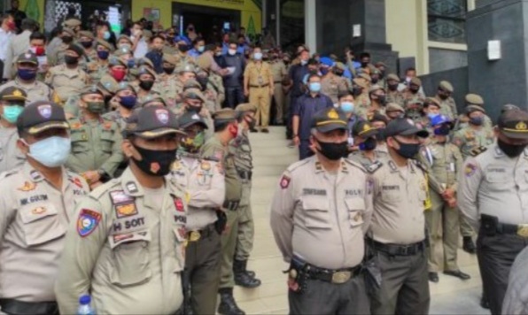 PEKANBARU. RIAUMADANI. COM - Persiapan pengamanan aksi unjuk rasa Gerakan Gejolak Driver di kantor DPRD Kota Pekanbaru dikendalikan kabagops polresta pekanbaru, Senin.