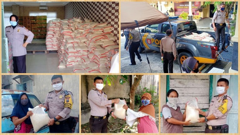 PEKANBARU RIAUMADANI. COM - Mobil Patroli Polsek Jajaran berjejer di halaman belakang Polresta Pekanbaru untuk mengangkut bantuan Sembako berupa beras kepada warga terdampak.
