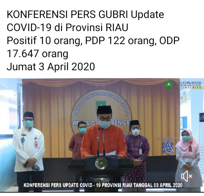Covid-19 Provinsi Riau, Gubernur Syamsuar pada Senin (13/4/2020) esok.