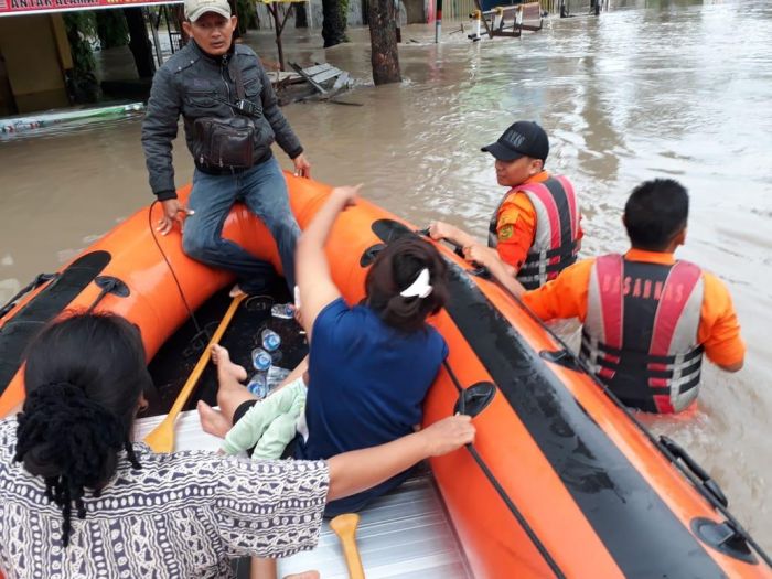 direndam banjir. Baniir tak hanya menutupi jalan, namun masuk kerumah.