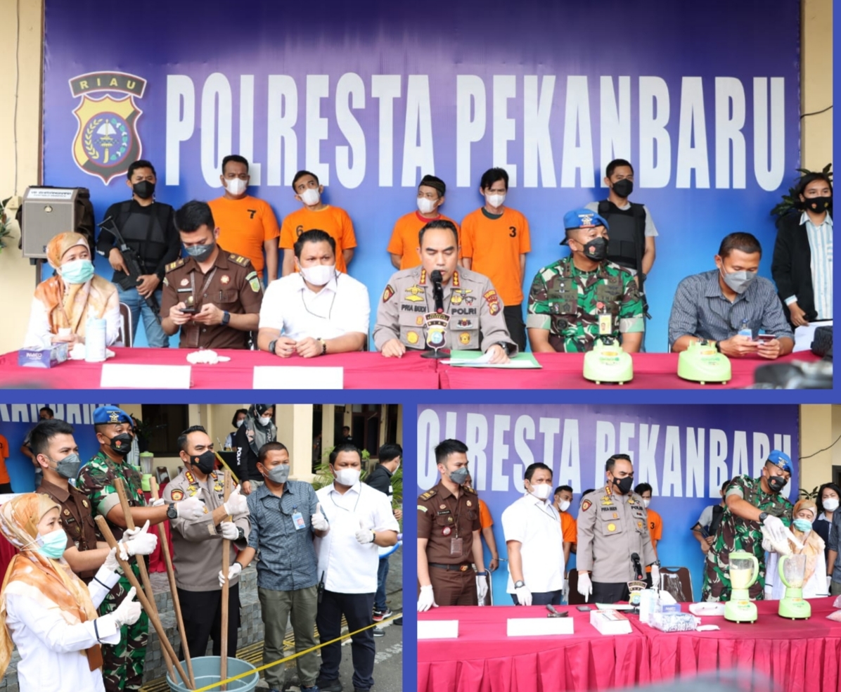 PEKANBARU - Kepolisian Resor Kota (Polresta) Pekanbaru, pada Rabu 26 Januari 2022 siang, memusnahkan sedikitnya 8.888 butir Pil Ekstasi dan 1,9 Kilogram.