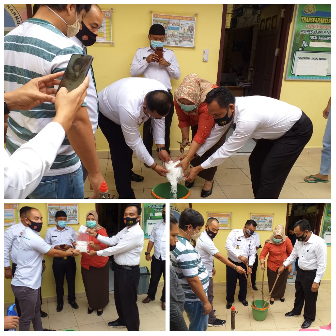 KAMPAR. RIAUMADANI. COM - Satuan Reserse Narkoba Polres Kampar menggelar acara pemusnahan barang bukti narkotika jenis shabu, bertempat di teras depan ruangan Satresnarkoba Polres Kampar pada Rabu siang (09/09/2020) pukul 10.30.