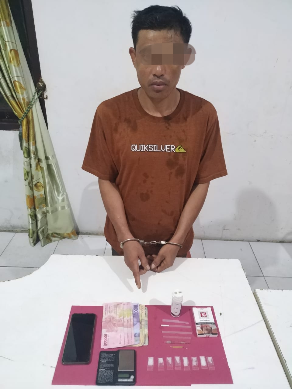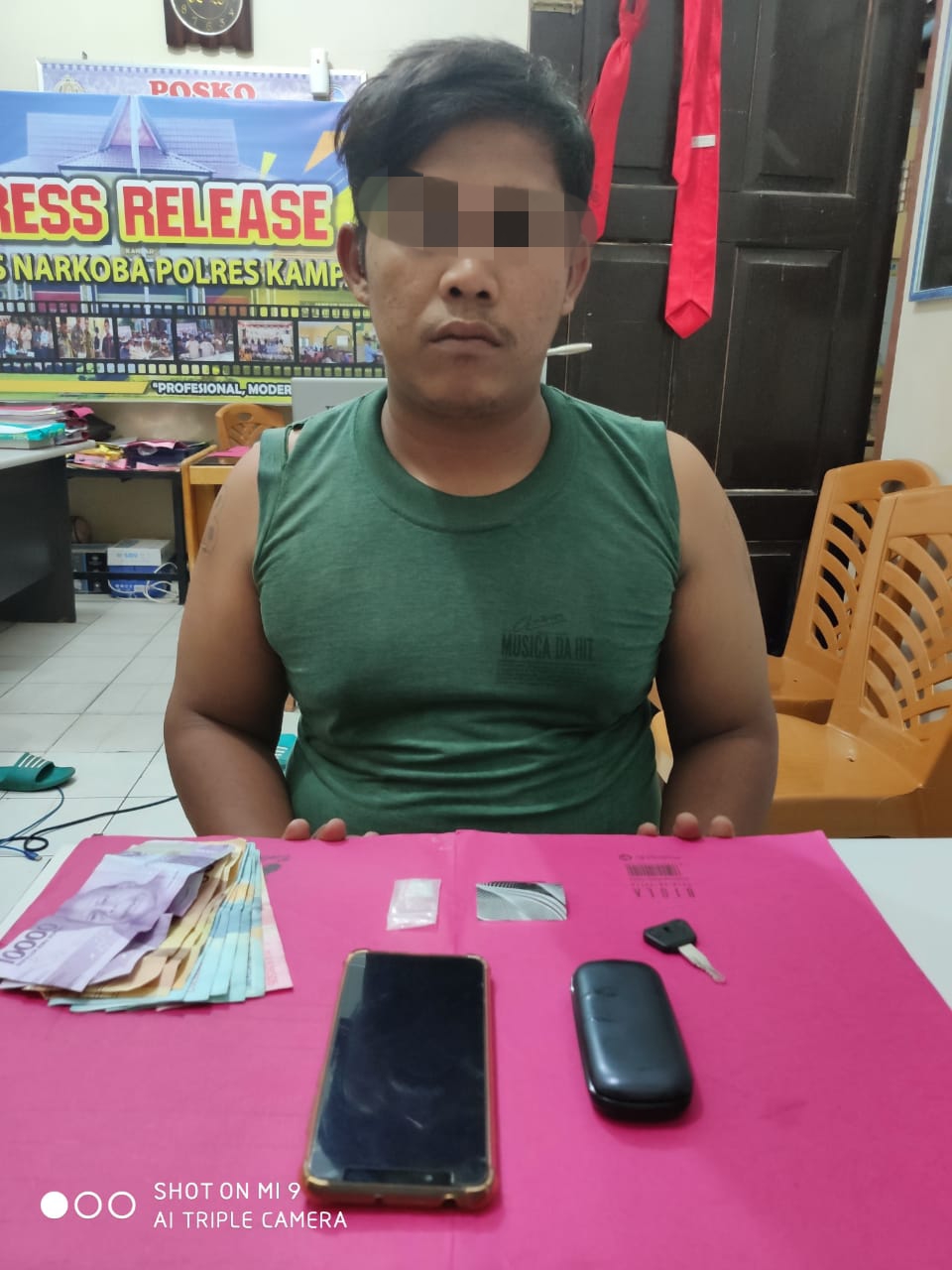 BANGKINANG. RIAUMADANI. COM - Unit Reskrim Polsek Bangkinang Kota tangkap seorang pengedar narkoba dengan barang bukti 25 paket shabu siap.