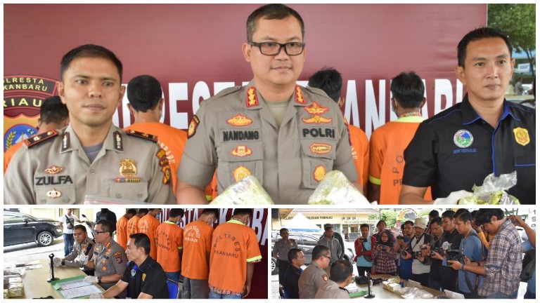 PEKANBARU. RIAUMADANI. COM - Polresta Pekanbaru bersama Polsek Sukajadi menggelar konferensi pers tentang pengungkapan kasus narkotika di tiga lokasi berbeda yaitu di Stadion Utama.