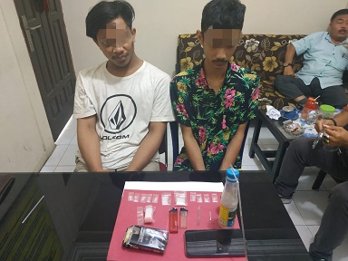 PERHENTIAN RAJA. RIAUMADANI. COM - Dua orang pengedar narkotika jenis shabu dan daun ganja kering, diciduk polisi disebuah gubuk yang berlokasi di wilayah Desa Kampung Pinang Kecamatan Perhentian Raja pada Senin pagi.