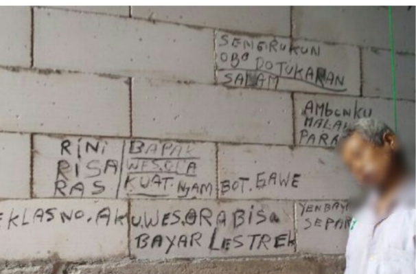 GROBOGAN. RIAUMADANI. COM - Ngatmin (57), warga Dusun Plosonambangan Desa Rejosari, Kecamatan Grobogan dikabarkan nekat mengakhiri hidupnya usai menulis pesan kepada keluarga dan anak-anaknya pada dinding.
