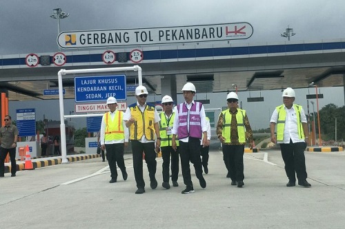 PEKANBARU. RIAUMADANI. COM - Presiden Joko Widodo meninjau pembangunan Tol Pekanbaru-Dumai Seksi 1 di Pekanbaru, Riau pada Jumat (21/2/2020)..