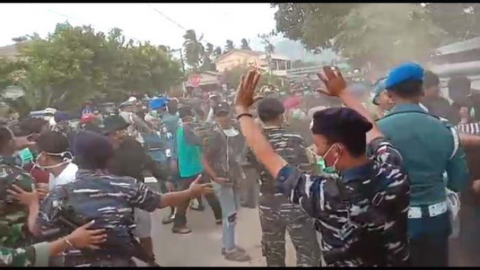 NATUNA. RIAUMADANI. COM - Kerusuhan massa terjadi di akses jalan gerbang menuju Bandara Raden Sadjad, Ranai, Kabupaten Natuna, Ahad.