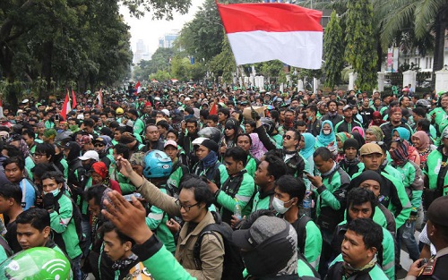 aksi pengemudi ojek online di depan Istana Negara dan Kementerian