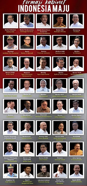 JAKARTA. RIAUMADANI. COM - Presiden Joko Widodo (Jokowi) dan Wakil Presiden Ma ruf Amin telah mengumumkan susunan menteri dalam kabinet yang akan membantunya menjalani roda pemerintahan periode.