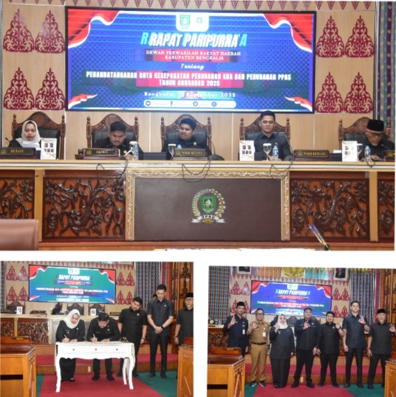 BENGKALIS - Dewan Perwakilan Rakyat Daerah (DPRD) Kabupaten Bengkalis bersama Pemerintah Kabupaten (Pemkab) Bengkalis secara resmi menandatangani nota kesepakatan Perubahan Kebijakan Umum Anggaran (KUA) dan Perubahan Prioritas Plafon Anggaran.
