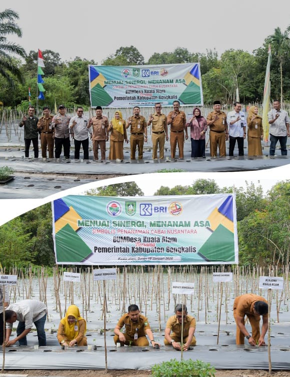 BENGKALIS. RIAU MADANI. COM - Dalam rangka mendukung program swasembada pangan nasional serta pengendalian inflasi daerah, Bupati Bengkalis diwakili Staf Ahli Bidang Ekonomi Syahruddin secara simbolis melaksanakan kegiatan penanaman cabai.