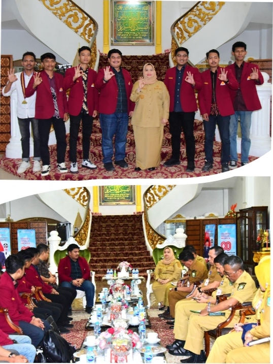 BENGKALIS. RIAU MADANI. COM – Bupati Bengkalis, Kasmarni, menerima audiensi dari Badan Eksekutif Mahasiswa (BEM) Politeknik Negeri Bengkalis di Wisma Sri Mahkota Bengkalis pada Senin, 29 September.