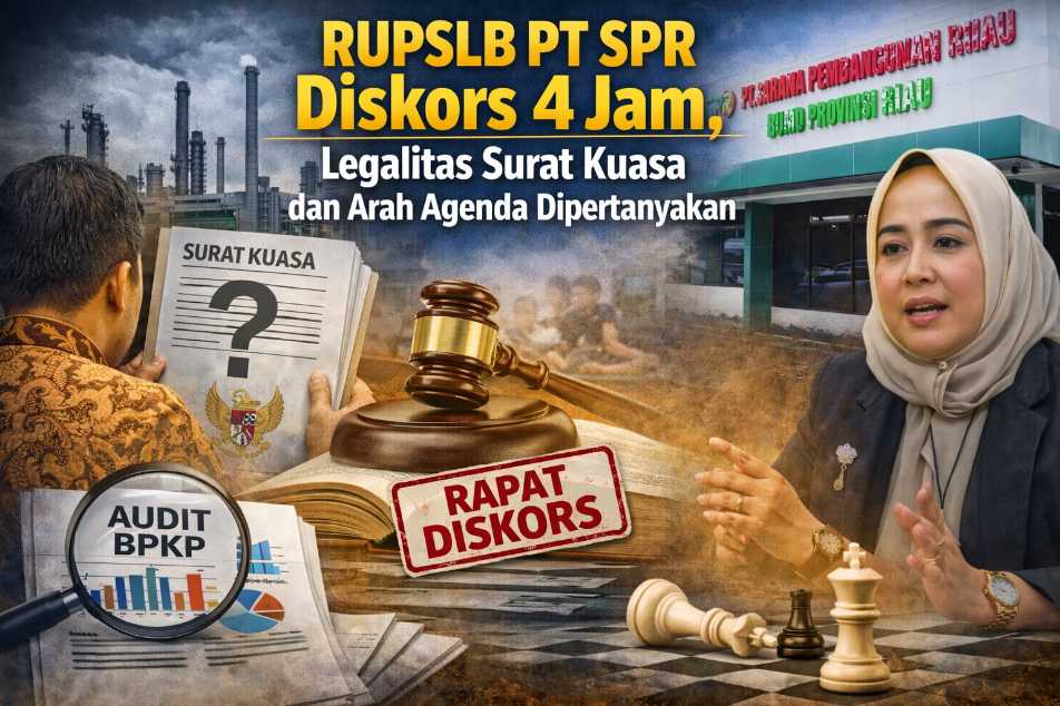 PEKANBARU. RIAU MADANI. COM - PT Sarana Pembangunan Riau (SPR) Persero menggelar Rapat Umum Pemegang Saham Luar Biasa (RUPS-LB) pada Jumat, 23 Januari 2026. Rapat yang sempat diskors 4 jam sejak pagi,baru kembali dilanjutkan pada pukul 14.30 WIB dan.