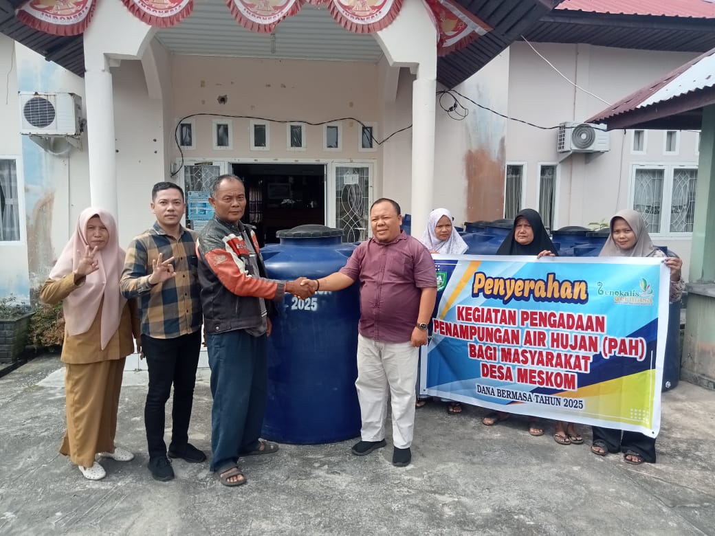 BENGKALIS. RIAU MADANI.COM – Ketua Badan Permusyawaratan Desa (BPD) Desa Meskom Abu Talib dI dampingi Kepala Dusun M.Nur membagikan alat tampung air bersih kepada masyarakat Desa Meskom. Kegiatan ini merupakan realisasi Program.