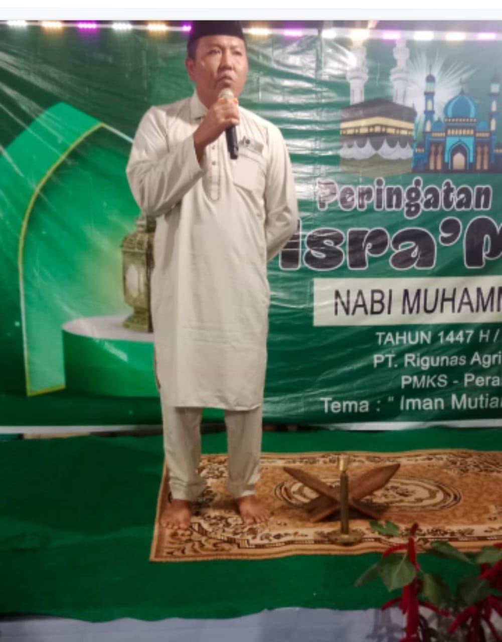 BENGKALIS.RIAUMADANI.COM. Ketua Badan Permusyawaratan Desa (BPD) Abu Talib bersama Sekretaris Desa Meskom menghadiri peringatan Isra Mi’raj Nabi Muhammad SAW yang digelar di Musolla Al Muslihun,Jumat.