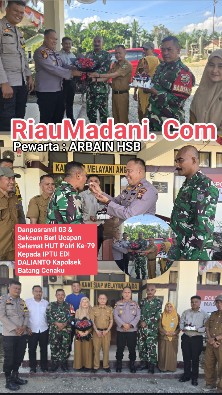 BatangCenaku, Inhu, RIAUMADANI. Com- Upika Kec. Batang Cenaku, Kab. Indragiri Hulu (Inhu) memberikan ucapan Selamat Hari Bayangkara Ke-79 Tahun 2025 kepada anggota Polri khususnya Anggota Polsek Batang Cenaku Selasa, (01 Januari 2025), sekira pukul.