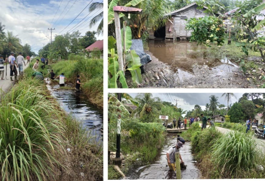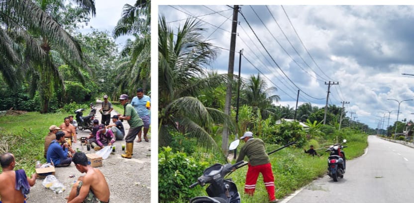 RIAU MADANI. COM,Sungai Apit - Penghulu kampung Parit I/II melakukan gotong royong bersama perangkat dan warga kampung Parit I/II kecamatan Sungai Apit kabupaten Siak Kamis, (18/12/2025).