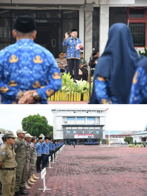 BENGKALIS RIAU MADANI. COM - Suasana upacara peringatan Hari Ulang Tahun (HUT) ke-54 Korp Pegawai Republik Indonesia (KORPRI) di Kabupaten Bengkalis, berlangsung khidmat, Senin, 1 Desember.