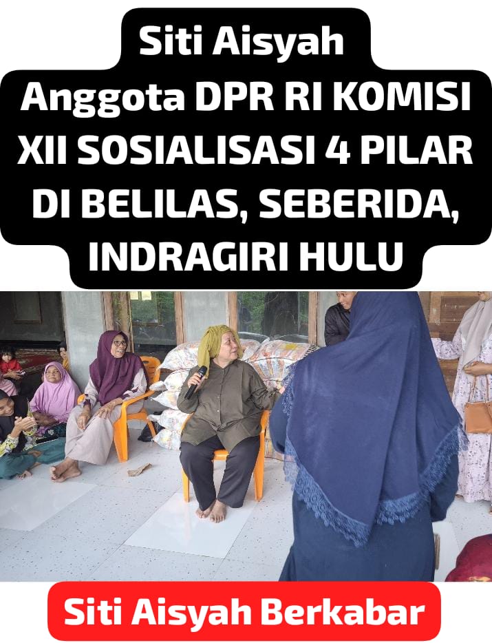 Seberida, Inhu, RIAUMADANI.Com- DPR RI /MPR RI merasa perlu mensosialisasikan kembali empat pilar MPR RI sebagai bentuk komitmen menjaga keutuhan Negara Kesatuan Republik Indonesia (NKRI). Hal ini di jelaskan Dra. Hj. Siti Aisyah, S.H., Sp. N.