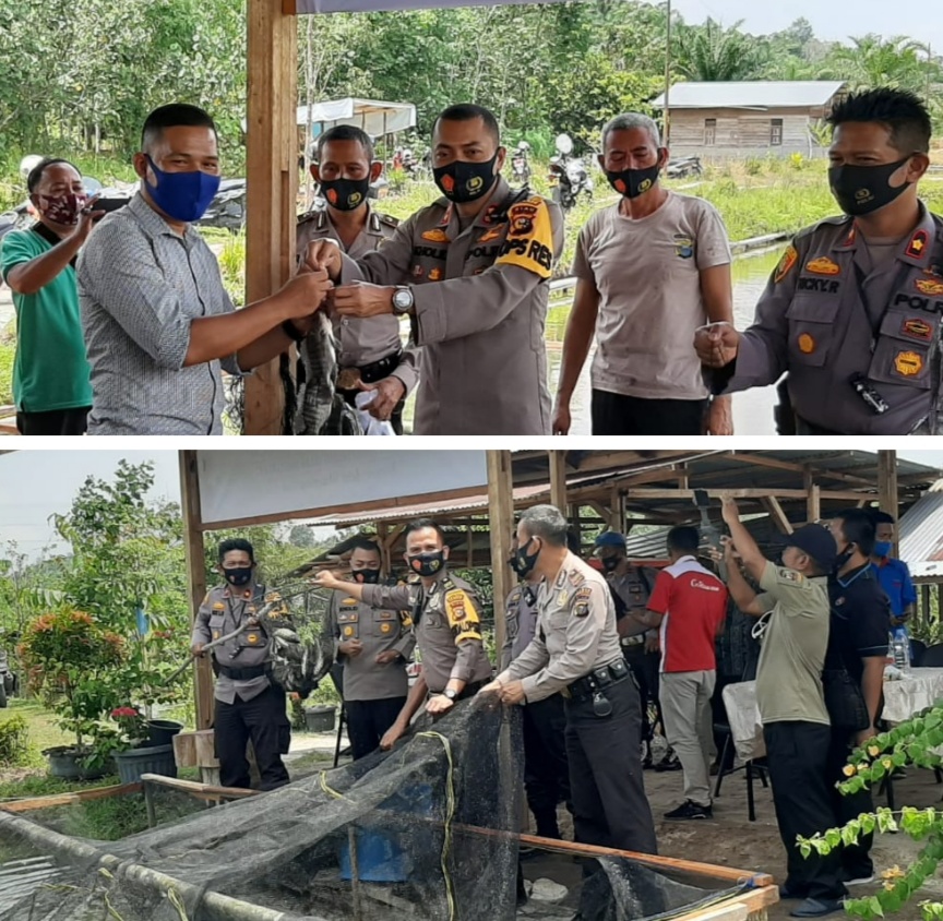 KAMPAR. RIAUMADANI. COM - Senin siang (7/9/2020) pukul 11.00 Wib, Kapolres Kampar AKBP Mohammad Kholid SIK meresmikan Panen Perdana Ternak Ikan Program Jaga Kampung yang dikelola Anggota Polres Kampar Ipda Alreflus.