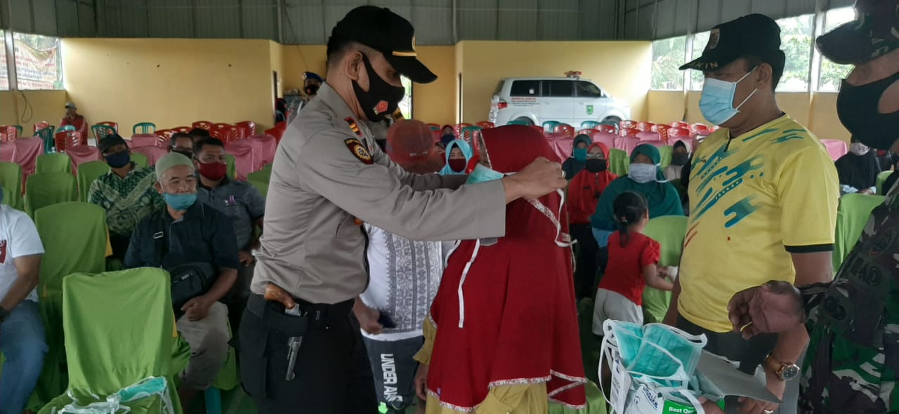 Kapolsek LBJ, Iptu Surya Gunawan Saragih Kenakan Masker Kepada Warga.*Ist