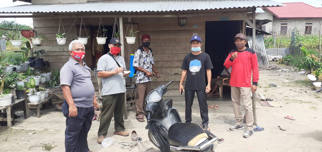 Kadus 4 Asriadi, Agustiar Ahalik, M.Fadzrin, dan Haswito ketua RT 02 selaku petugas penyemprot di kediaman br Sirait. *Fotographer: Arsad G.