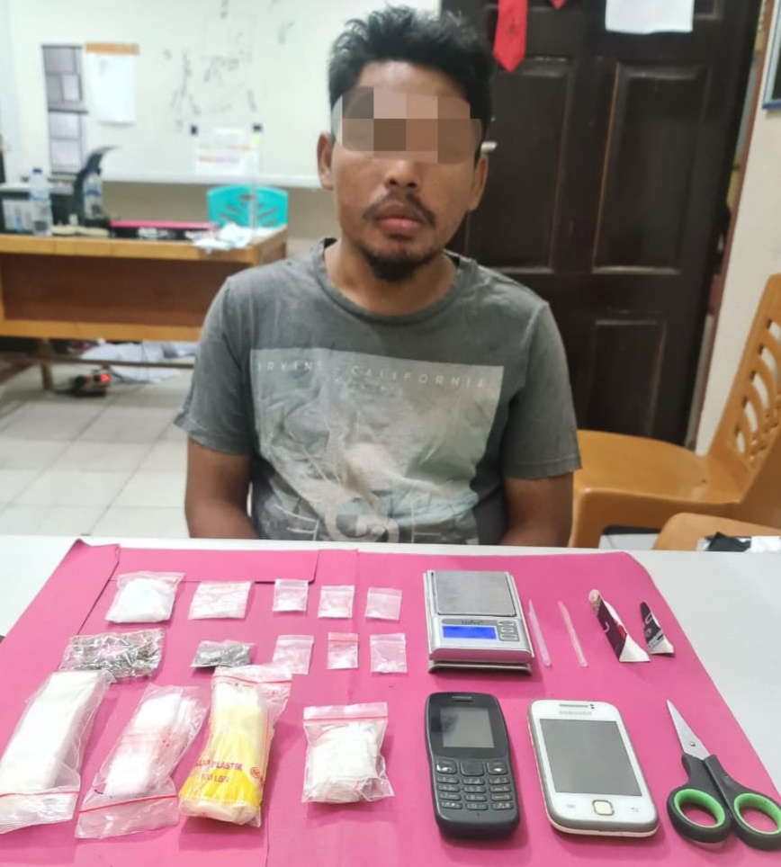Bersama tersangka juga diamankan barang bukti 8 paket narkotika jenis shabu terbungkus plastik bening seberat 13,60 Gram, 2 paket narkotika jenis tanaman daun Ganja Kering seberat 1,57 Gram, 4 ball plastik bening, sebuah timbangan digital, 4 buah sendok shabu, sebuah gunting dan 2 unit Hp yang digunakan pelaku.