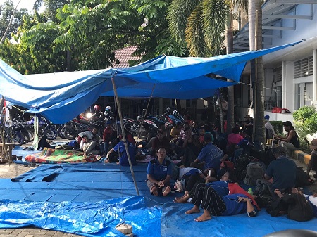 Tidak hanya buruh PT Padasa Enam Utama, yang menduduki kantor Disnaker, tapi juga anak dan istrinya ikut meramaikan dan menyampaikan tuntutuan. Hingga saat ini ratusan buruh tersebut masih berada di dalam tenda sambil duduk-duduk dan tiduran.