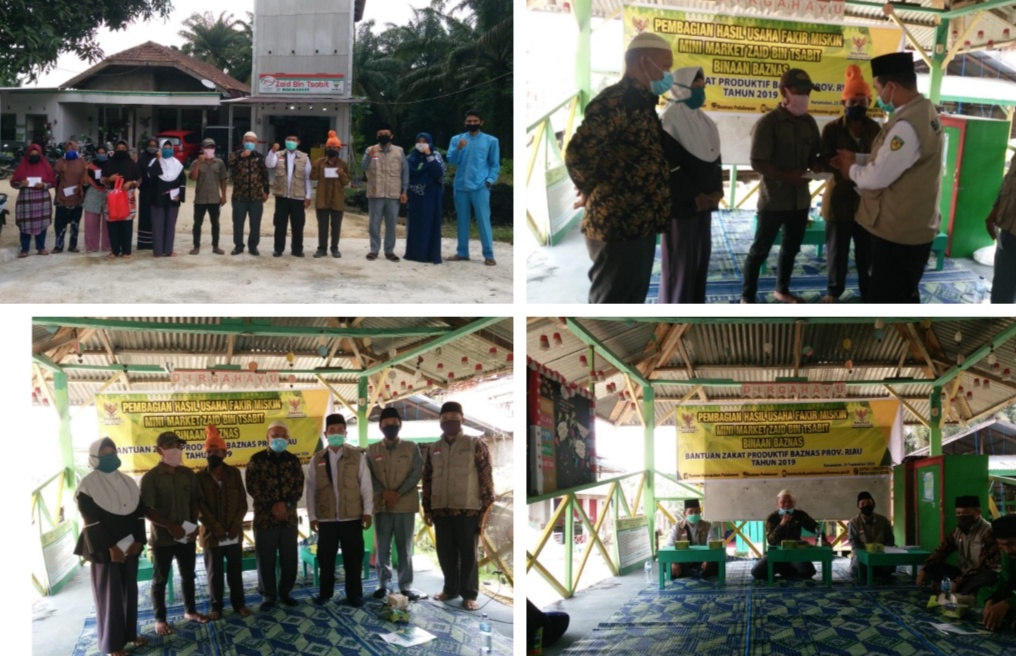 PELALAWAN, RIAUMADANI. COM - Badan Amil Zakat Nasional ( BAZNAS ) Kabupaten Pelalawan mengadakan kegiatan pembagian hasil usaha dari Mini Market Zaid Bin Tsabid yang miliki oleh fakir miskin dan dikelola oleh Unit Pengumpul Zakat (UPZ) Kecamatan Kerumutan.
