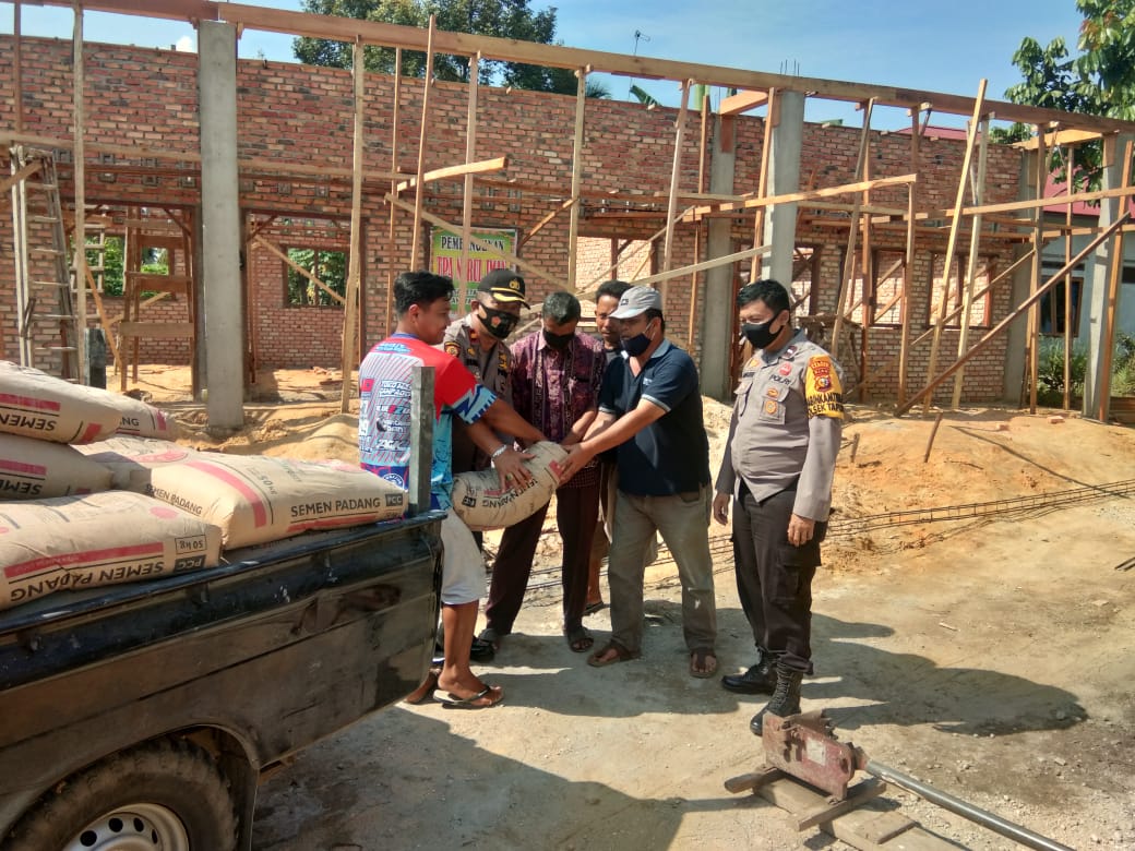 TAPUNG. RIAUMADANI. COM - Kapolsek Tapung Kompol Sumarno bantu 50 sak semen untuk pembangunan TPA Nurul Iman yang berlokasi di Dusun II Desa Petapahan Kecamatan Tapung. Senin (5/10/2020),