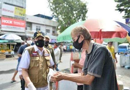 "Hari ini kita akan berikan masker kepada masyarakat sebanyak 10 ribu pieces, dan bagi masyarakat yang patuh mengenakan masker akan kita berikan hadiah, yakni berupa pohon buah sehingga bisa ditanam di rumah," ucap Gubri.