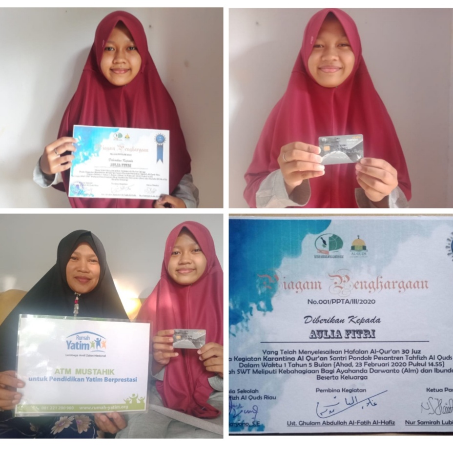 Rumah Yatim Riau beri  Bantuan Pendidikan kepada Aulia Hafidzah 30 Juz Al Qur an