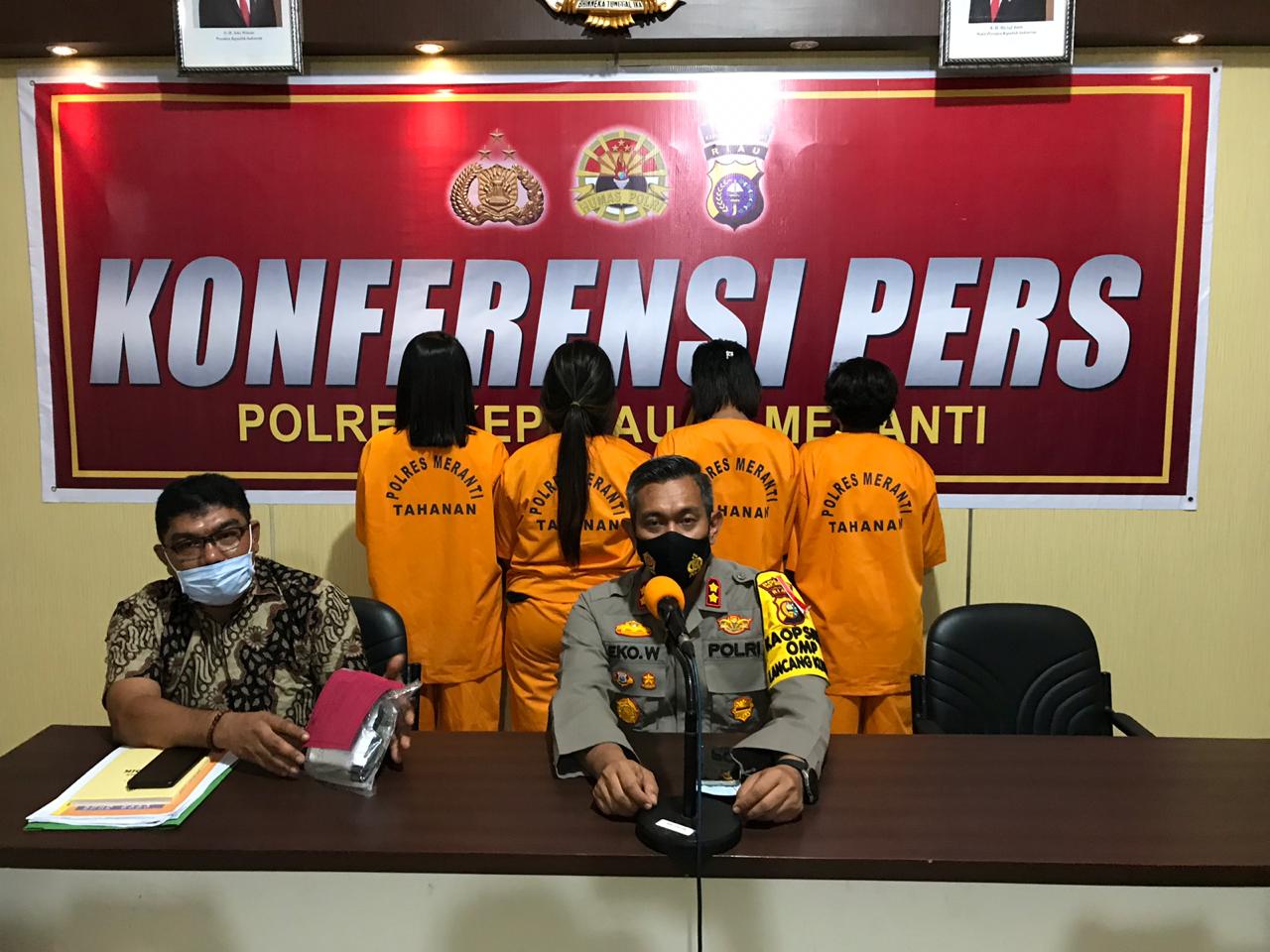 Kapolres Kepulauan Meranti, AKBP Eko Wimpiyanto Hardjito SIk, didampingi Kasat Narkoba Iptu Darmanto SH, dalam konferensi pers Jumat (6/11/2020),