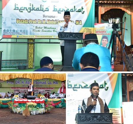 H Syahrial Abdi mengucapkan selamat datang di Negeri Junjungan Kabupaten Bengkalis ini kepada Ustadz Abdul Somad, mudah-mudahan kehadiran ustadz dapat memberikan pencerahan, pemahaman serta motivasi kepada kita untuk tetap istiqomah meningkatkan kualitas ibadah kepada Allah SWT.
