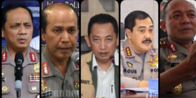 Kelima perwira tinggi itu antara lain, Wakapolri Komjen Gatot Eddy Pramono, Kabareskrim Komjen Listyo Sigit Prabowo, Kabaharkam Polri Komjen Agus Andrianto, Kalemdiklat Komjen Arief Sulistyanto, dan Kepala BNPT Komjen Boy Rafli Amar.