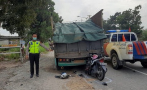 RIAUMADANI. COM - Khaidir pengendara sepeda motor Honda Beat nomor polisi BM 2722 FN tewas usai menabrak bagian belakang truk yang sedang terparkir di bahu Jalan Raya Pekanbaru - Bangkinang KM 22, pada Senin (1/2/2021) pagi.