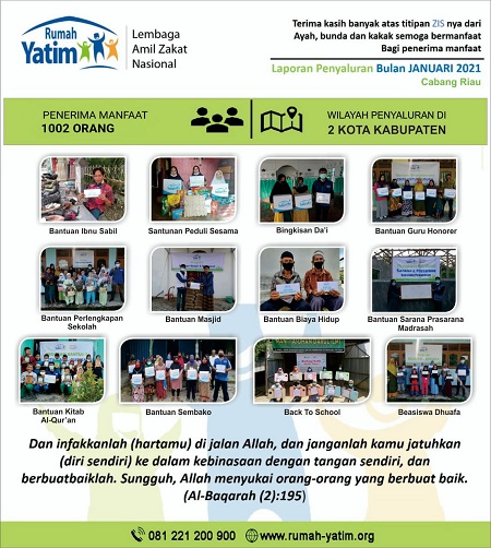 1002 Mustahik Merasakan Manfaat Penyaluran Program Rumah Yatim Riau di Bulan Januari 2021