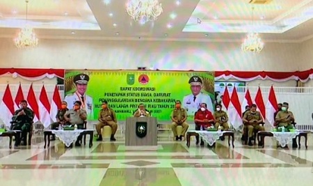 Penetapan status siaga Karhutla tahun 2021 ini ditetapkan langsung oleh Gubernur Riau (Gubri) Syamsuar dalam rapat koordinasi kebakaran hutan dan lahan yang dihadiri oleh bupati/wali kota se-Provinsi Riau secara virtual di Gedung Daerah Balai Serindit, Senin (15/2/2021).
