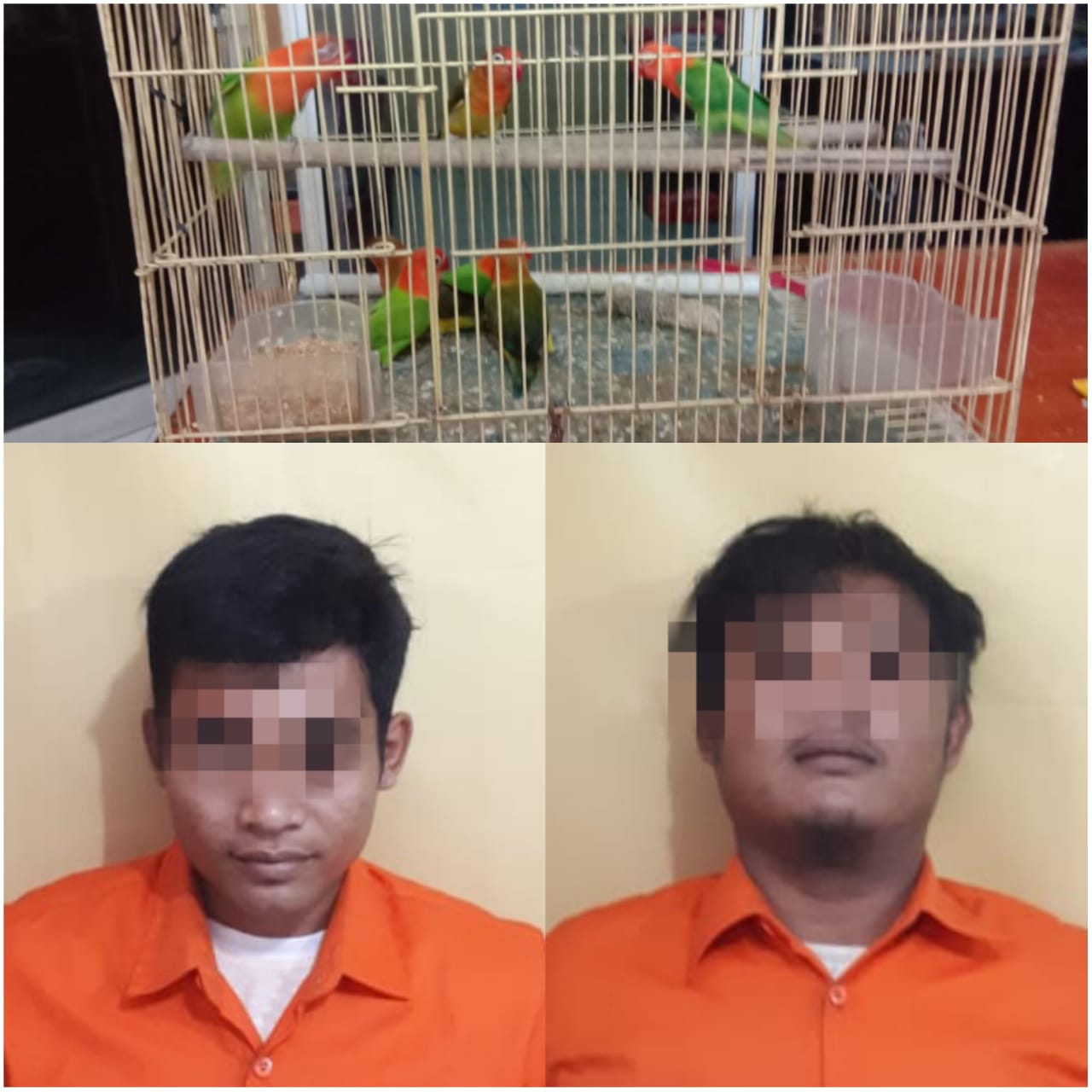 Bersama pelaku turut diamankan barang bukti berupa 7 ekor burung Lovebird, 5 ekor burung kenari dan sebuah sangkar burung.