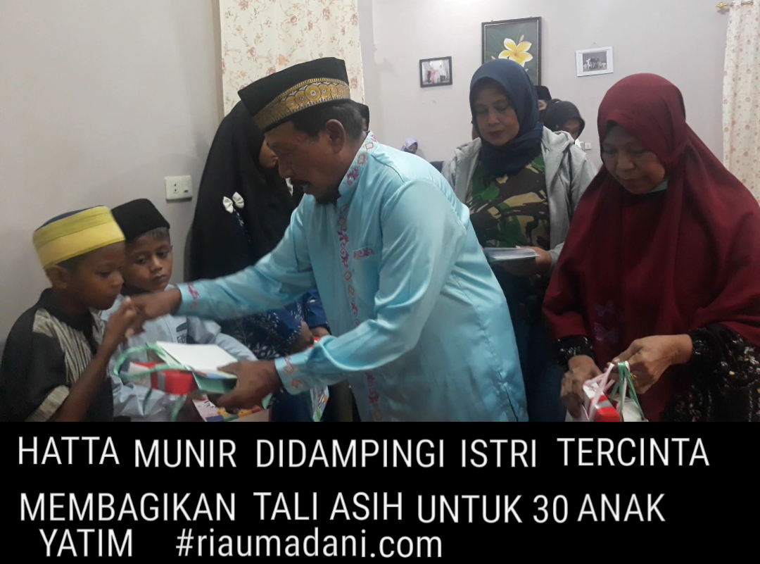 "Sebenarnya kegiatan menyantuni anak Yatim ini, sudah rutin setiap bulan suci Ramadhan keluarga besar Hatta Munir mengadakan kegiatan ibadah seperti ini, namun karena saat ini melibatkan PPM dan PT.Bangkit Group, maka suasana Tali Asih dan Silaturahmi ini semakin meriah, terlebih acara ini didukung dan dihadiri pembina kami dari Kodim 0302 Inhu dan Danramil 04 Pasir Penyu," ucapnya.