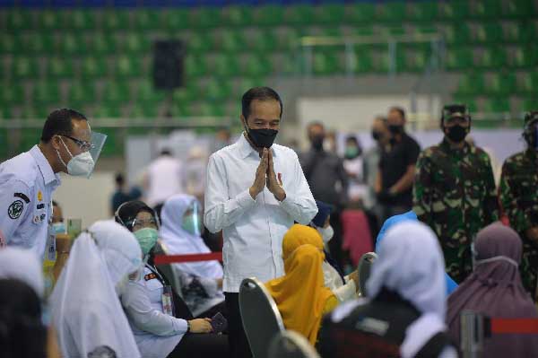 Kegiatan tersebut dilakukan Presiden Joko Widodo, guna memberikan semangat kepada masyarakat yang menerima vaksinasi massal dalam agenda kunkernya.