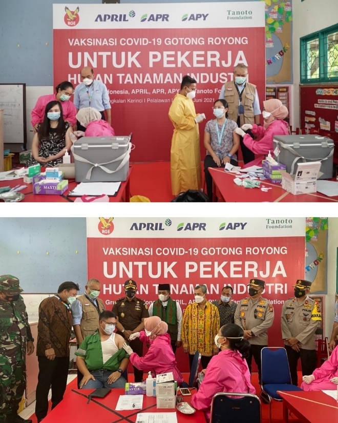 Untuk tahap awal, sebanyak 1.800 karyawan perusahaan bagian dari grup APRIL akan menerima vaksin dan secara bertahap akan menjangkau seluruh karyawan.