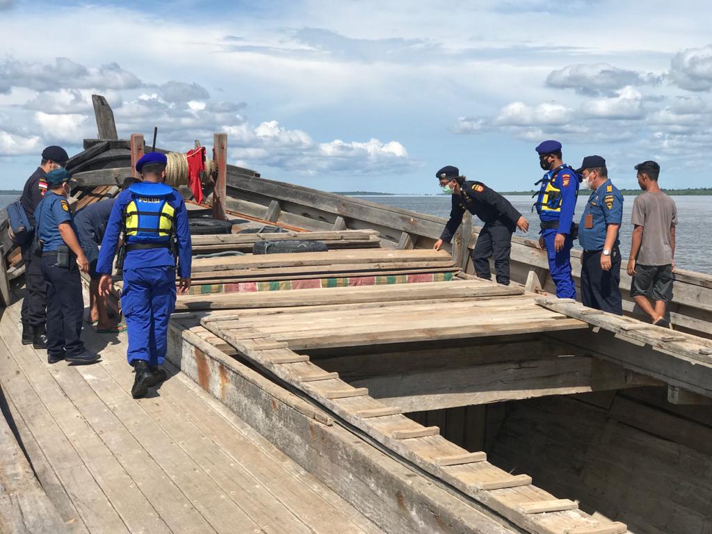 Personel gabungan dari Satpolair, Bea Cukai dan Syahbandar menggelar patroli bersama di perairan Kepulauan Meranti, Provinsi Riau, Rabu (16/6/2021).