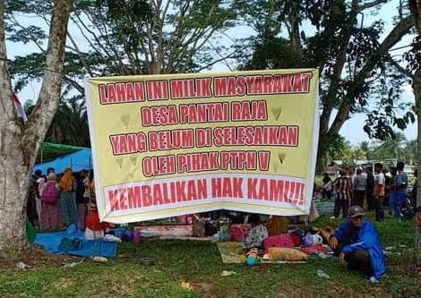 Salah satu tokoh masyarakat Pantai Raja, Abadillah Datuk Abugarang mengatakan bahwa PTPN V sudah merampas tanah milik masyarakat selama 36 tahun sejak tahun 1984 saat PTPN V mulai merontokkan perkebunan karet milik masyarakat.