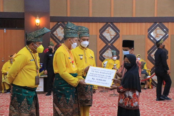 RIAUMADANI. COM - Puncak peringatan HUT Kota Pekanbaru yang ke-237 dilakukan secara sederhana dan dihadiri kalangan terbatas, karena masih dalam kondisi Pandemi Covid-19. Tema yang diangkat adalah "Bangkit Menghadapi Pandemi Covid -19, Bersinergi Membangun Madani untuk Indonesia Maju"