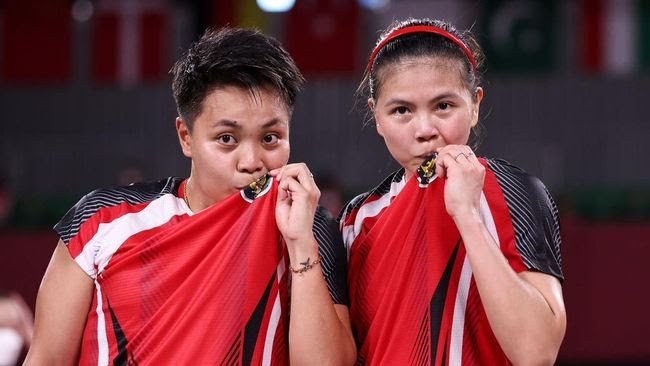 Greysia Polii dan Rahayu Apriyani langsung menangis haru begitu dipastikan menyumbang medali emas untuk Indonesia di cabang olahraga bulu tangkis ganda putri Olimpiade Tokyo 2020.