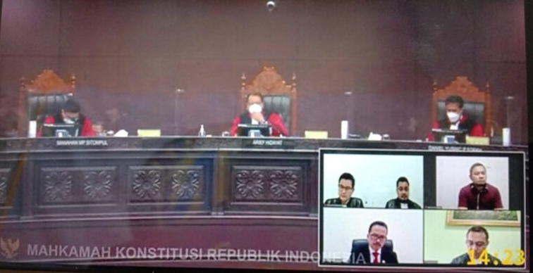 Turut hadir dalam persidangan secara daring atau online, Heintje Grontson Mandagie sebagai Pemohon I, Hans M Kawengian sebagai Pemohon II, dan Soegiharto Santoso sebagai Pemohon III.